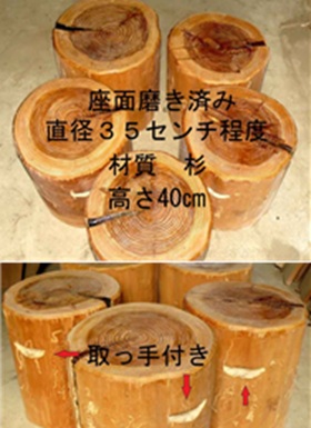 高さ34cm、直径33cmの杉丸太を4ケ、